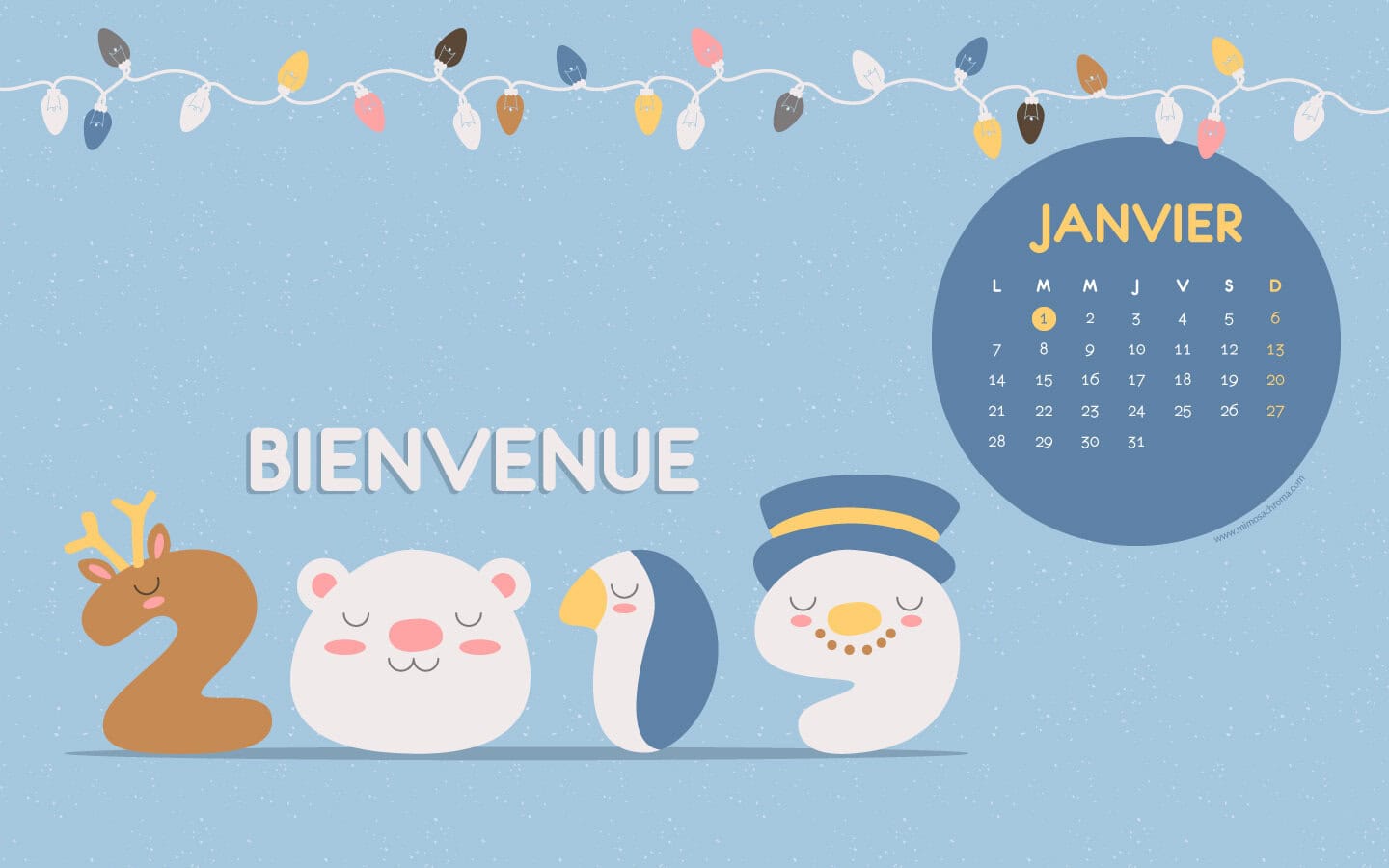 1. Très joli calendrier pour commencer cette nouvelle année. Avec deux bonnes idées : avoir changé la police pour le nom de mois et avoir utilisé des animaux pour les chiffres de 2019. Cela nous promet une belle année de calendriers 🙂