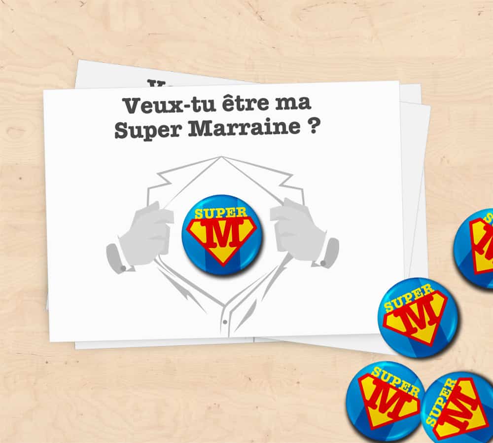 Carte avec badge pour faire votre demande de parrain ou marraine à la personne choisie pour votre enfant !