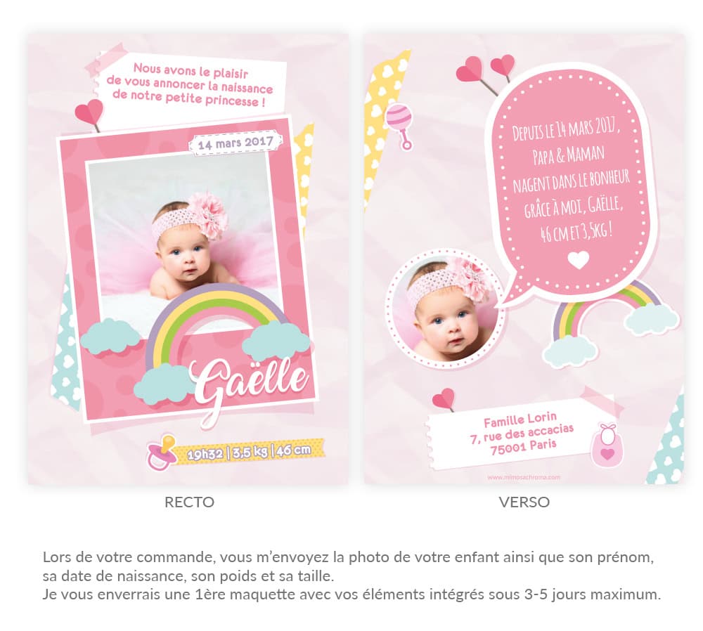 • Une photo de votre bout’chou, son prénom, sa date de naissance, son poids et sa taille.