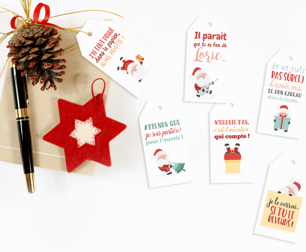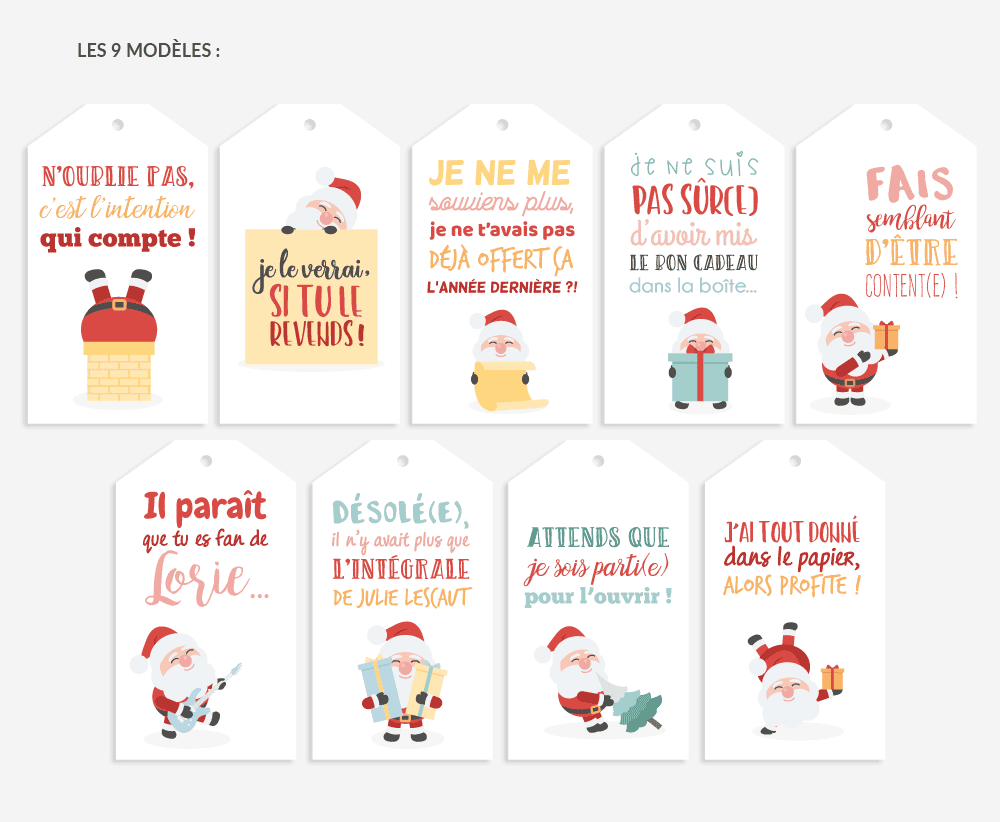 Lot de 9 tags pour cadeaux de noël – humour