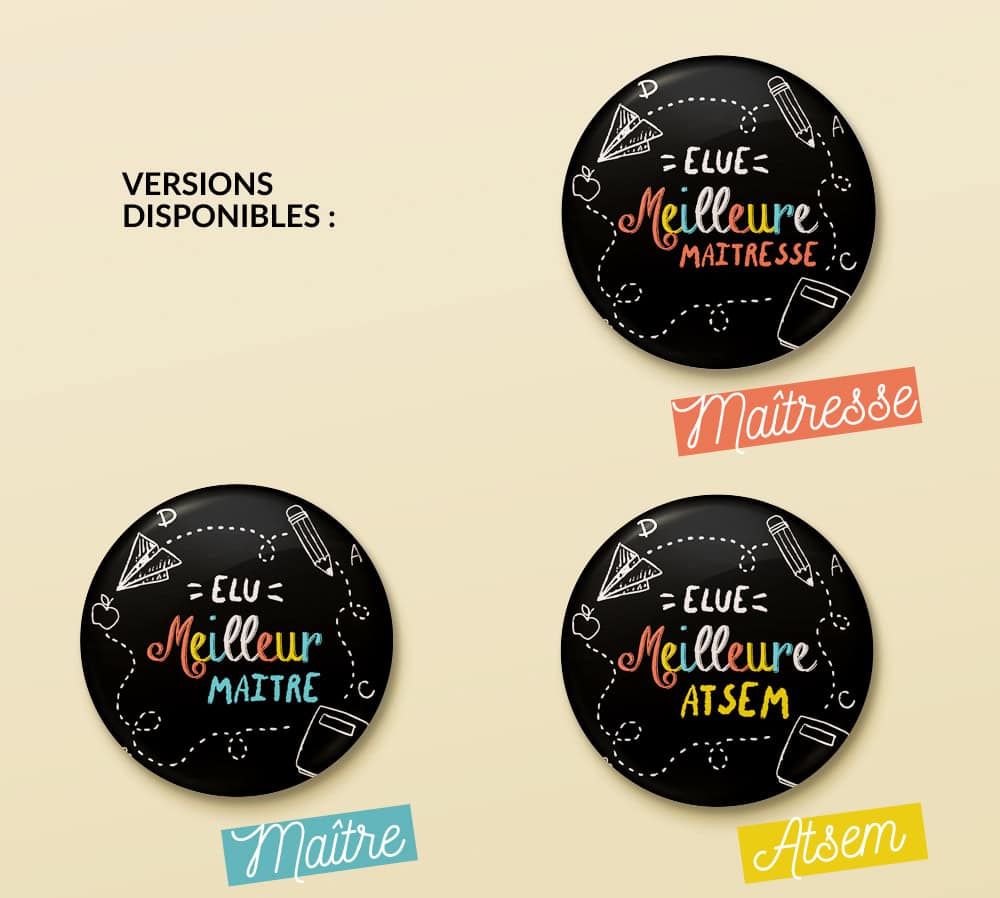 3 versions disponibles à choisir pour : Maîtresse, Maître, ATSEM.
