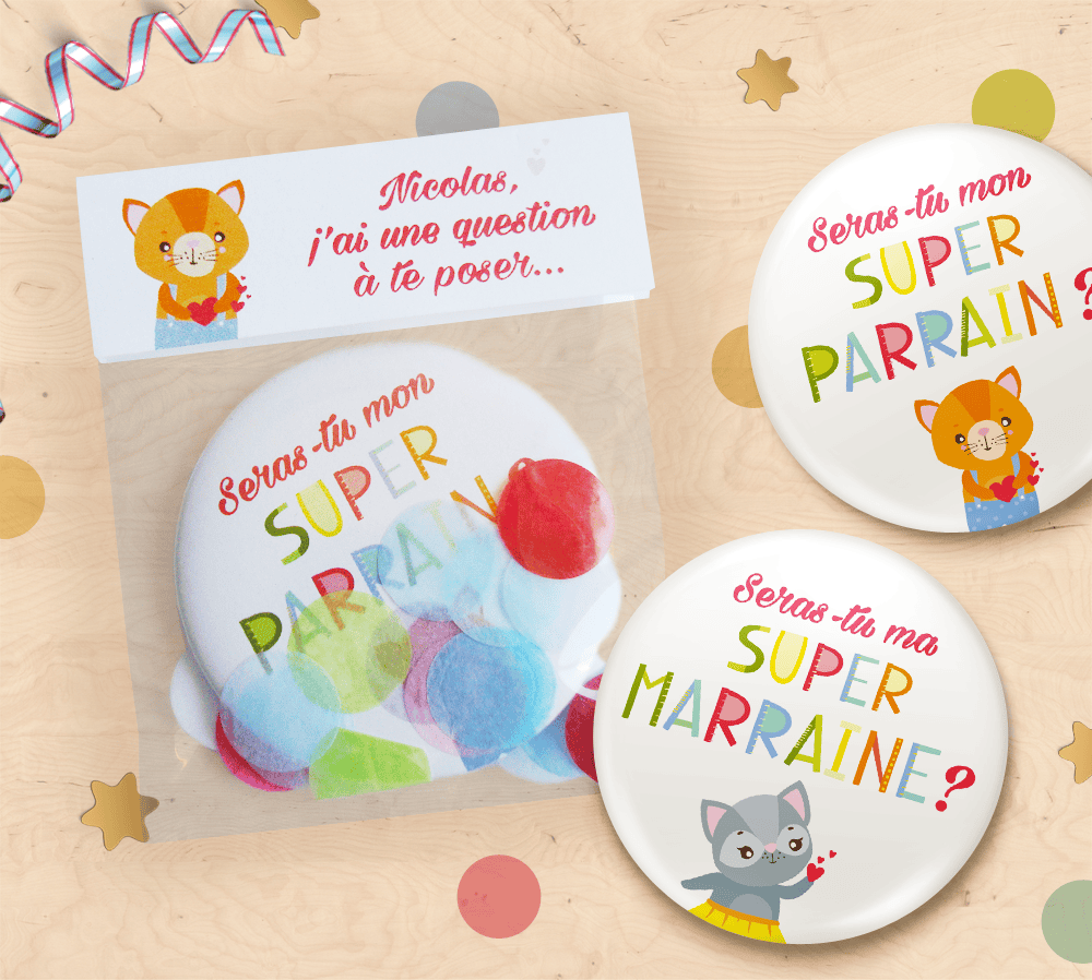 Magnet 56mm pour faire votre demande de parrain ou marraine à la personne choisie pour votre enfant !